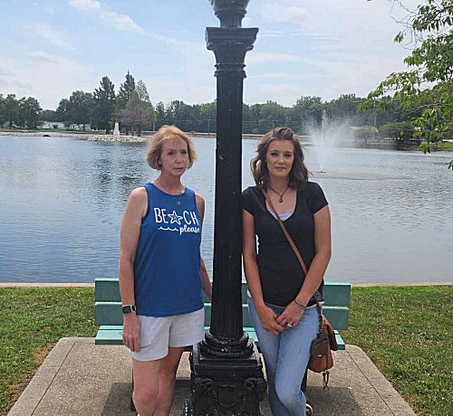 Julie and Kayla enjoying our park lake | Dave and Gaby and her baby |