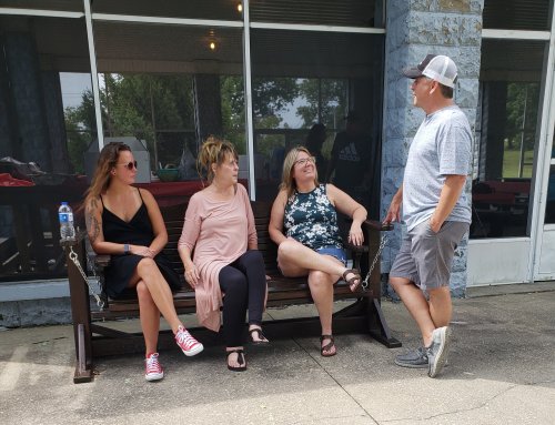 Laughingt at something, Dave Mary and Phyl | Group Chatting on Pavillion porch |