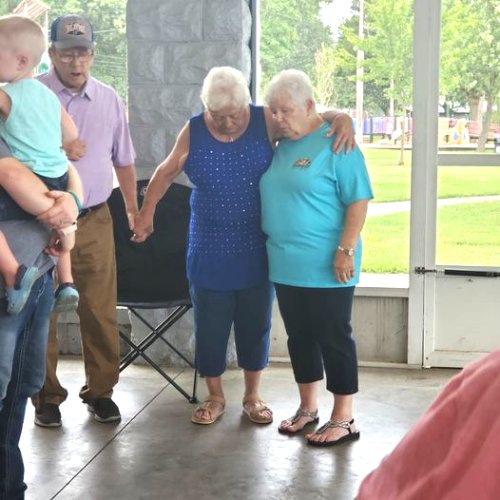 Cousins outside Pavillion | Prayer before the feast. Dave officiating. |