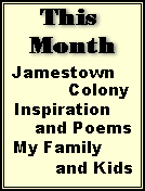 One has to wonder what it must have been like in 1660, when Danil Mathena (age 22), and Michael Mathena ( age @ 19) jumped on a ship, for the Colonies. You have to know the reasoning, the political cultures in England at the time, and the events to understand their motivations. Young men in England, especially not the first born, were usually left to fend for themselves. Many years of unrest and a civil war in England, that resulted in the "Be-heading of Charles I", left little opportunity for young men in England. Danil and Michael must have been tempted by the News, that the James Colony, after many years of starvation, attacks by Indians, and dis-loyal members... was now becoming a stable community, and other colonies were sprouting all over the east part of the New World, and Tobacco was selling for 4-8 Pounds Sterling. The draw of wide open free lands, easy and rich soil, and off to the "New World" they ventured. So being close to where I am, and for the many who can never get to visit JamesTown. I did it for you! For the REST of the STORY, CLICK HERE! | |